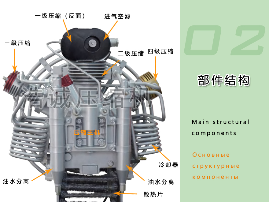 2. Reliable main unit design: Adopting mature three-cylinder four-stage compression technology, it runs smoothly, is highly efficient, and has a long service life.