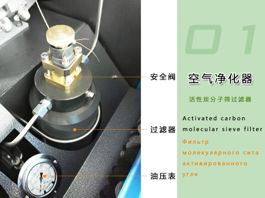 Equipped with a three-stage breathing air purification system (activated carbon, molecular sieve, and carbon monoxide absorbent) to ensure clean, safe, and odorless air.