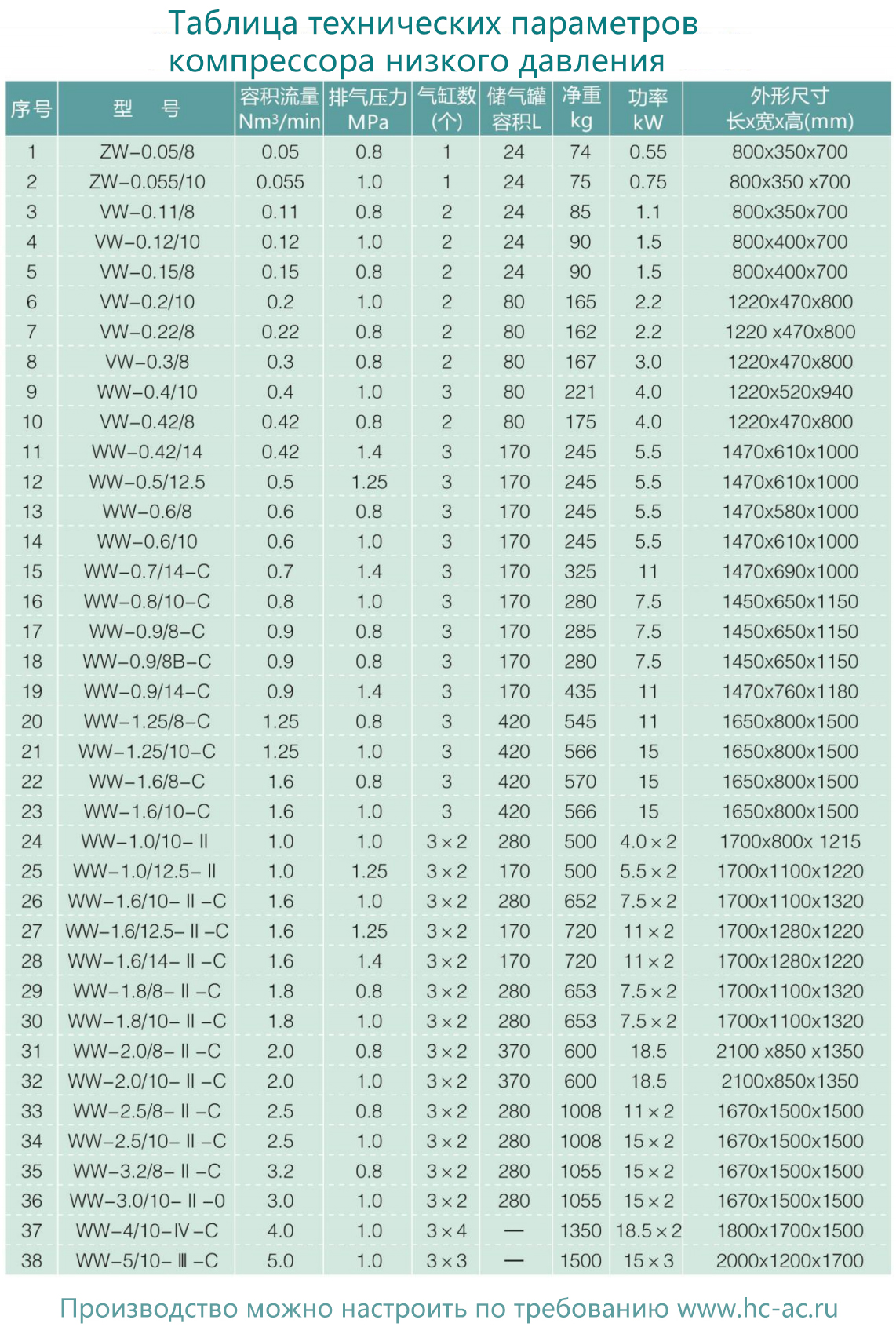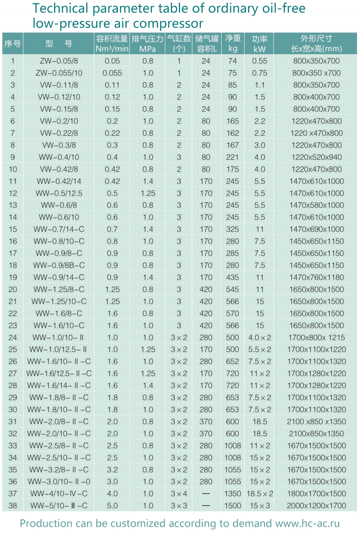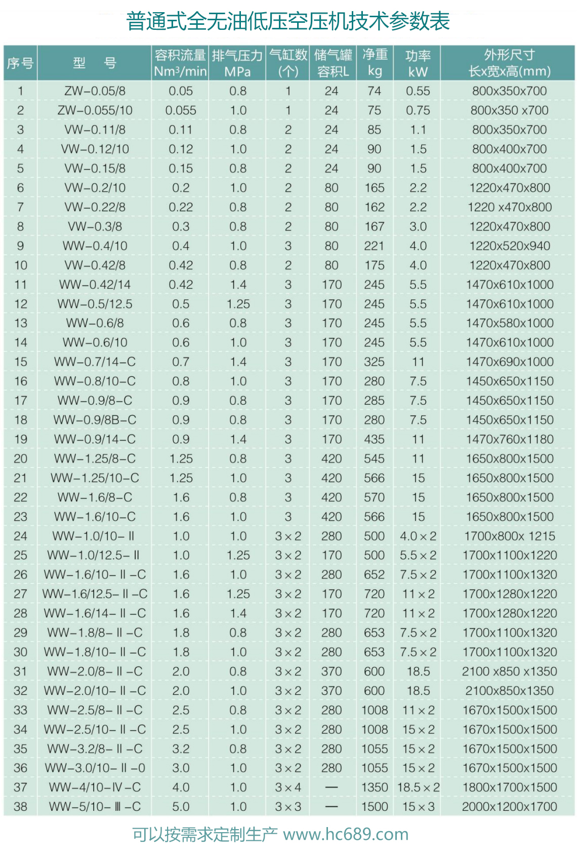 小型低壓無空壓機技術(shù)參數(shù)選型表